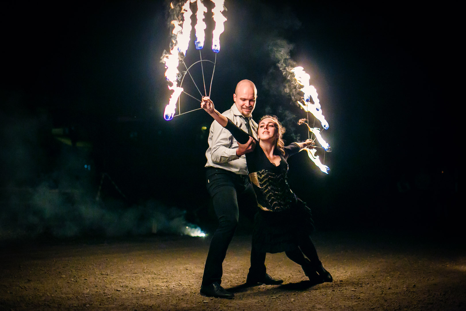 Dynamiczny pokaz tańca z ogniem, w którym królują energiczne przeboje muzyki rozrywkowej. Show stworzone z myślą o uśmiechu i dobrej zabawie. Nogi same rwą się do tańca, a dłonie do klaskania! Fireshow naładowane pozytywną energią i porywającymi choreografiami połączonymi z widowiskową akrobatyką partnerską.